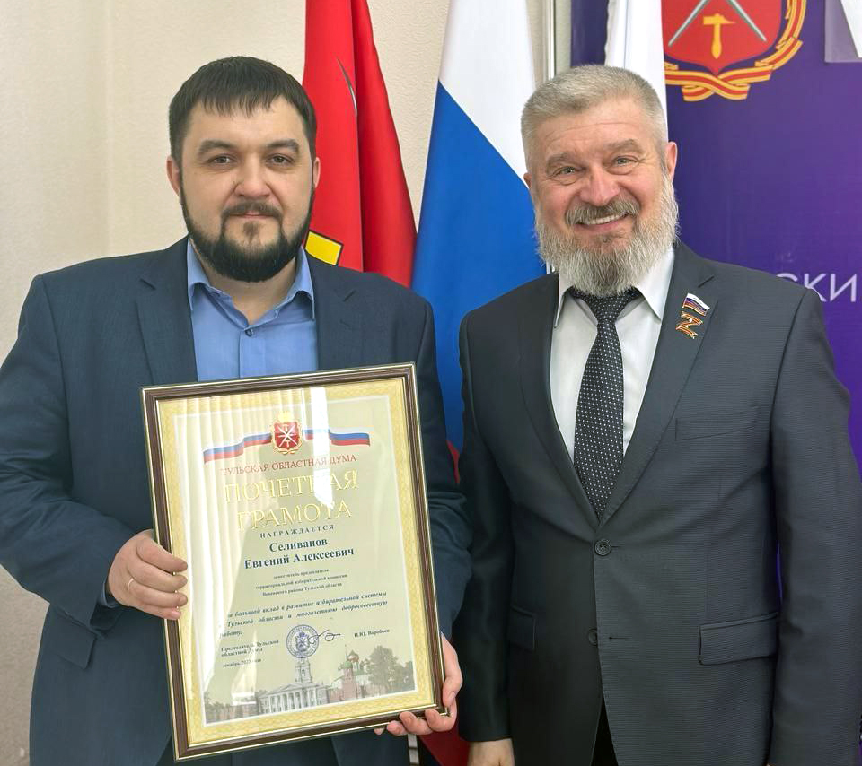 Наталья Бочарникова и Евгений Селиванов отмечены наградами областной думы «за большой вклад в развитие избирательной системы в Тульской области и многолетнюю добросовестную работу».