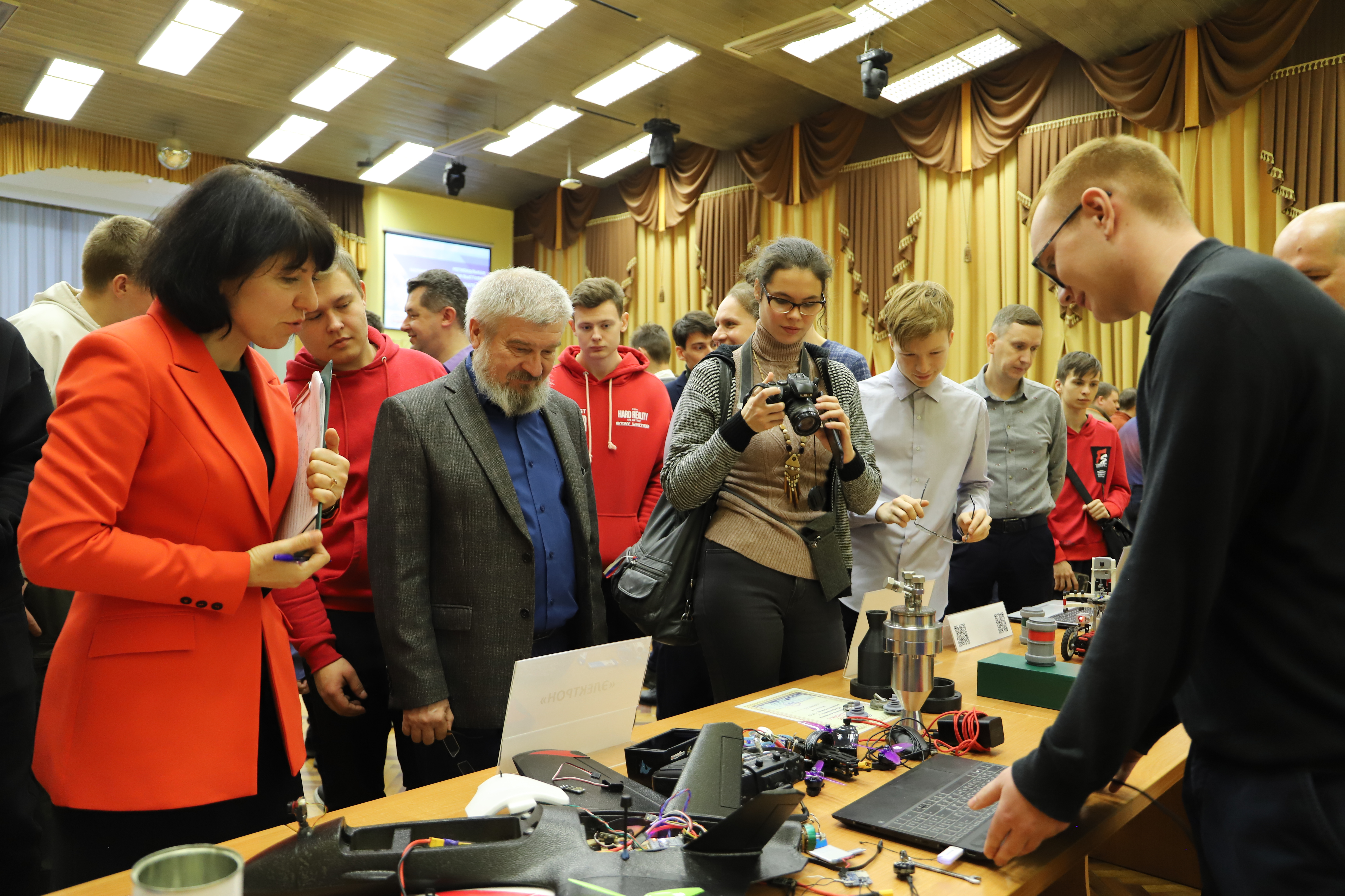 На выставке было представлено 44 экспоната: от инновационных разработок до макетов и программных средств. Участие приняли предприятия ОПК, вузы, учреждения СПО, центры дополнительного образования и школы. Призовое третье место заняла команда с проектом дрона «Искатель фруктов».