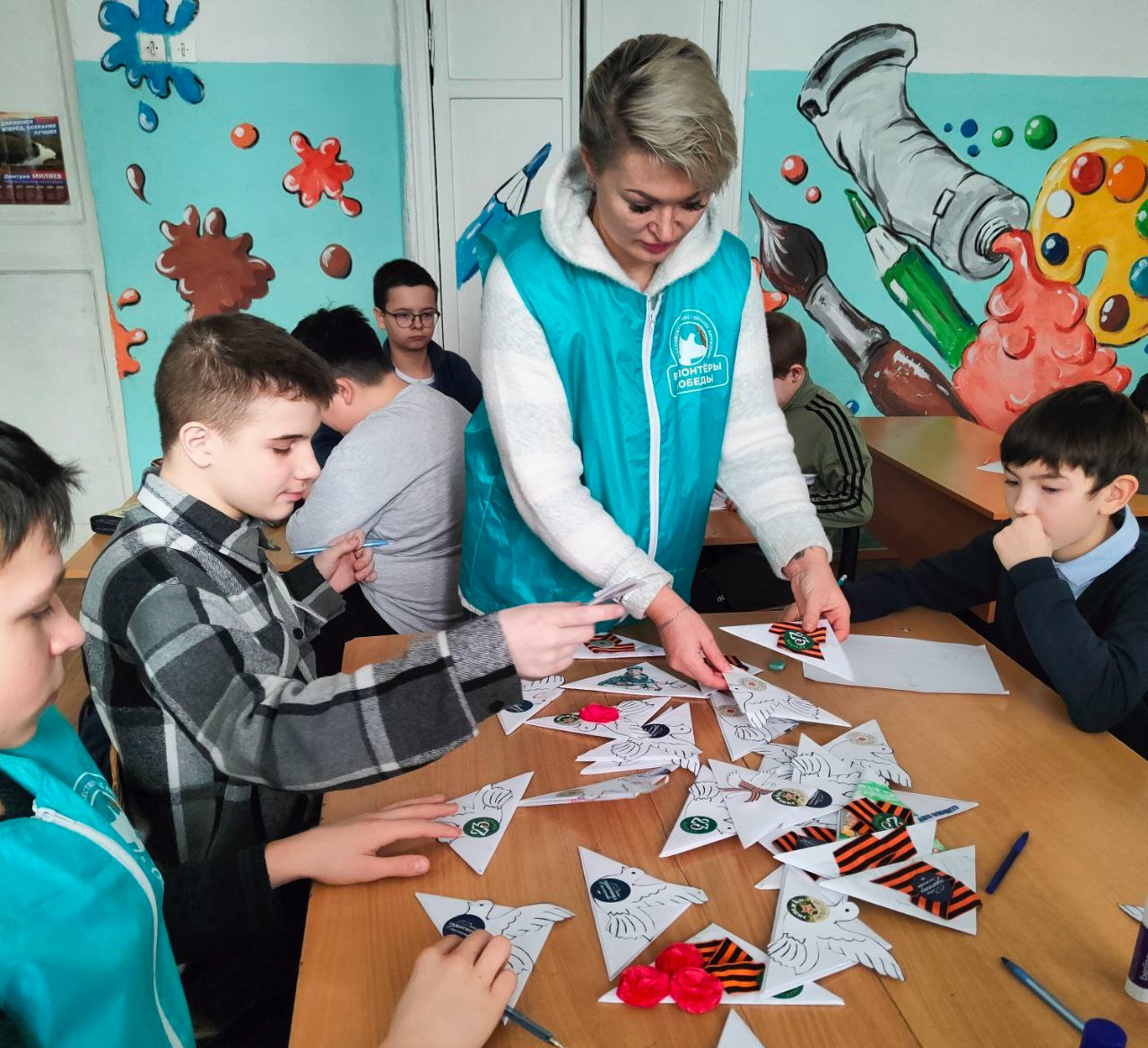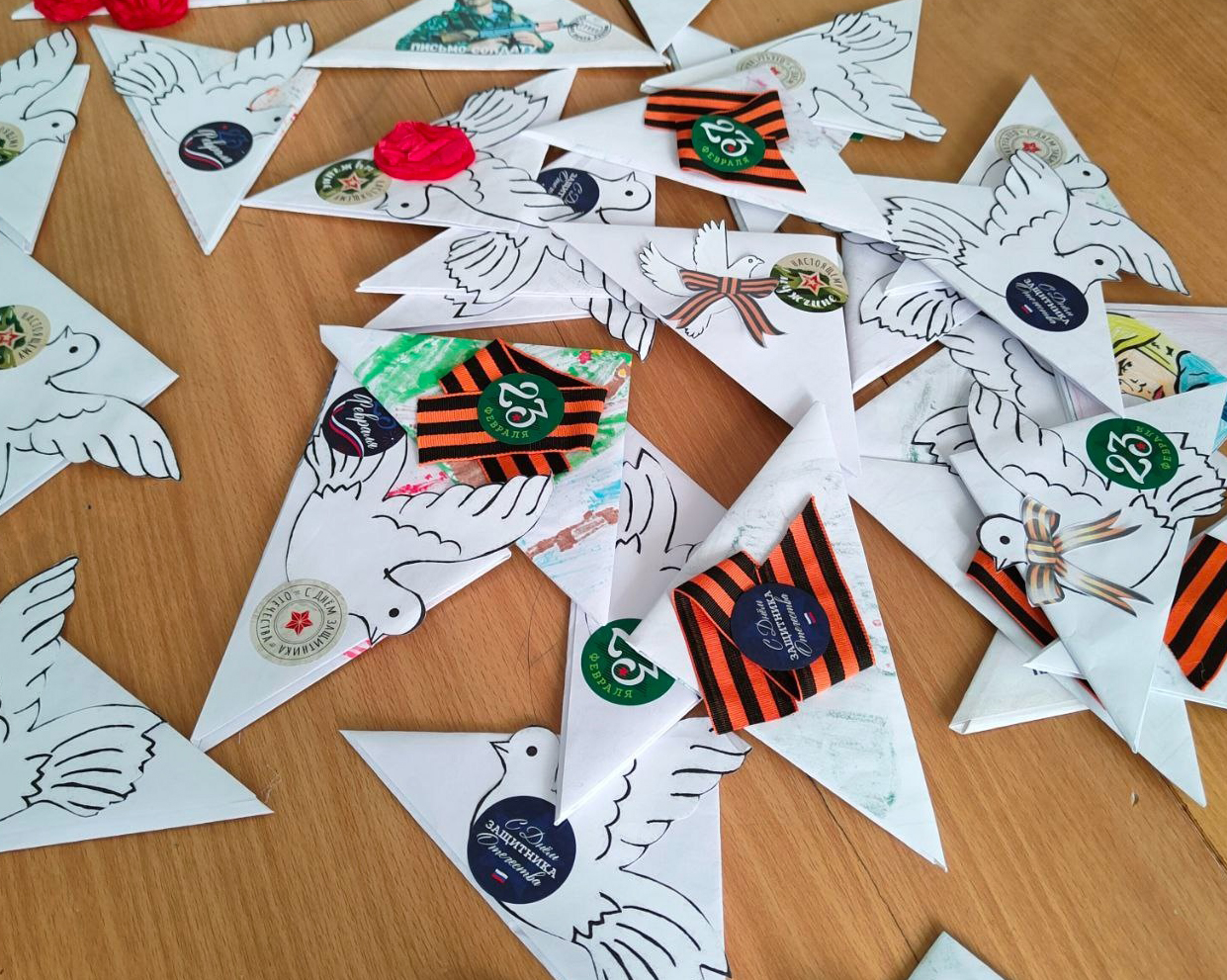 «С самого начала специальной военной операции школьники поддерживают письмами наших бойцов. Эта традиция берёт свое начало ещё с Великой Отечественной войны, когда письмо было радостной весточкой для солдата и придавало ему сил. Свои пожелания ребята украсили рисунками, георгиевскими ленточками и оформили их в виде треугольников, как дань памяти весточкам из дома времен Великой Отечественной», — рассказала о проекте «Письмо солдату» Людмила Синельщикова.