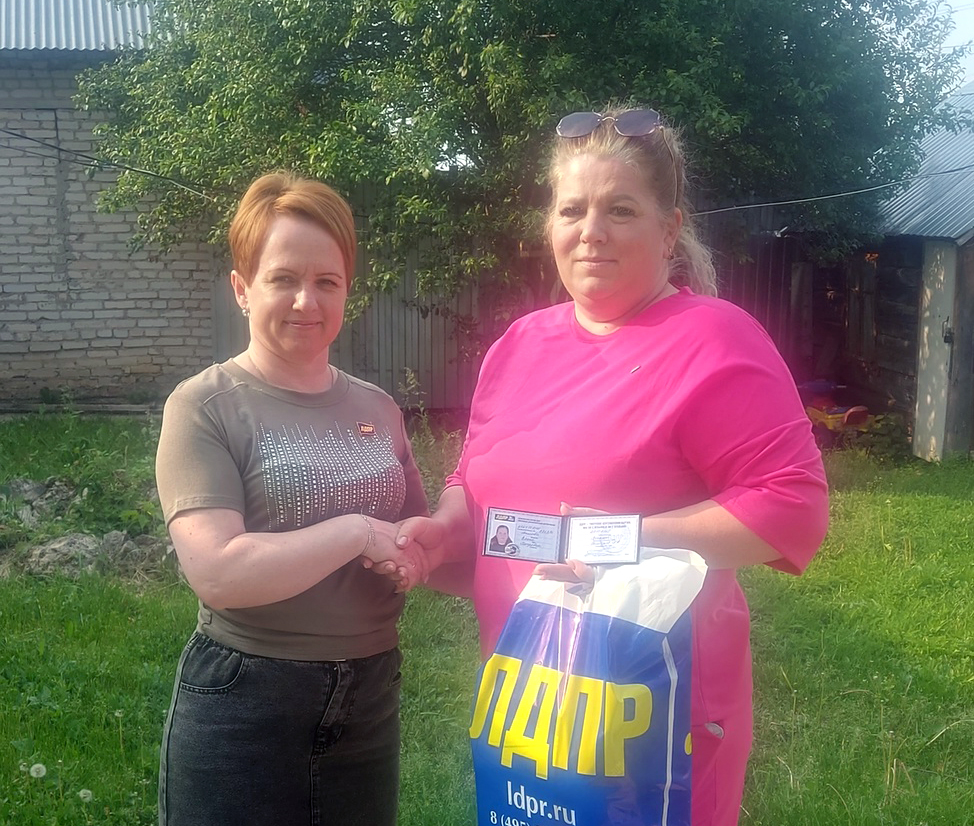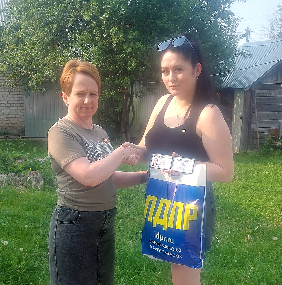 Координатор Венёвского отделения ЛДПР вручила членские билеты новым партийцам Елене и Дарье Анисовым