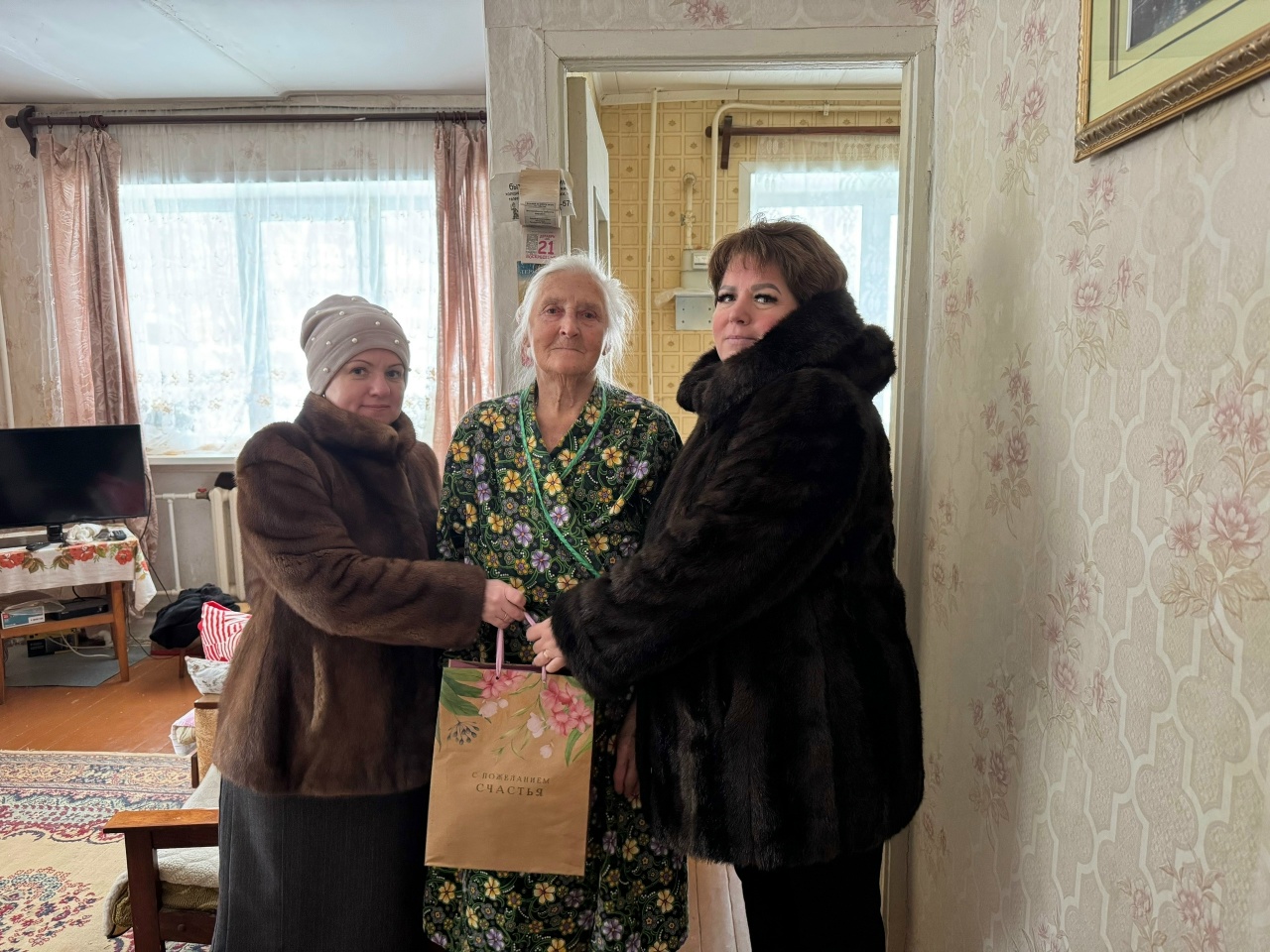 Юлия Титенко и Анастасия Гришина в новгодне-рождественские праздники вручили подарки юным веневцам и помогли пожилым людям.