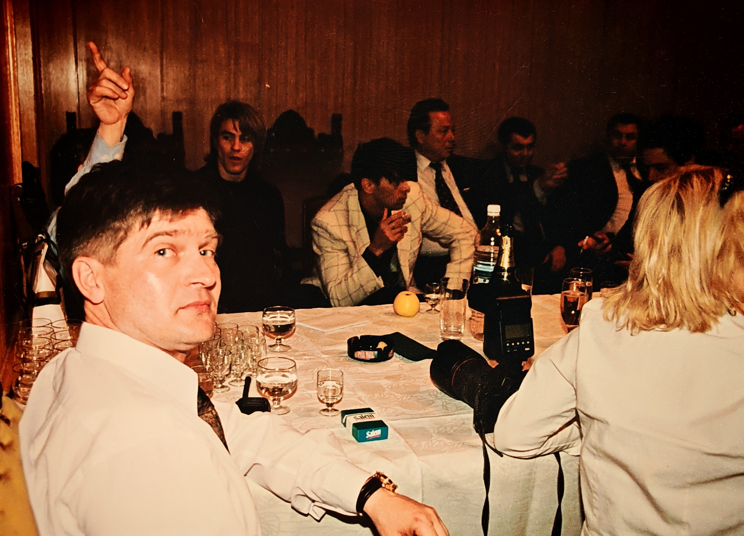 На фоне букета... В самом известном в своё время ресторане на Арбате в Москве заказал банкет по случаю защиты диссертации Владимира Вольфовича. Стою жду его приезда с гостями. На последнем фото рука ВВЖ, указующий перст! На заднем плане можно увидеть тех, с кем он общается. Знатоки эстрады узнают. Впереди много интересного...» - пишет в соцсетях депутат.